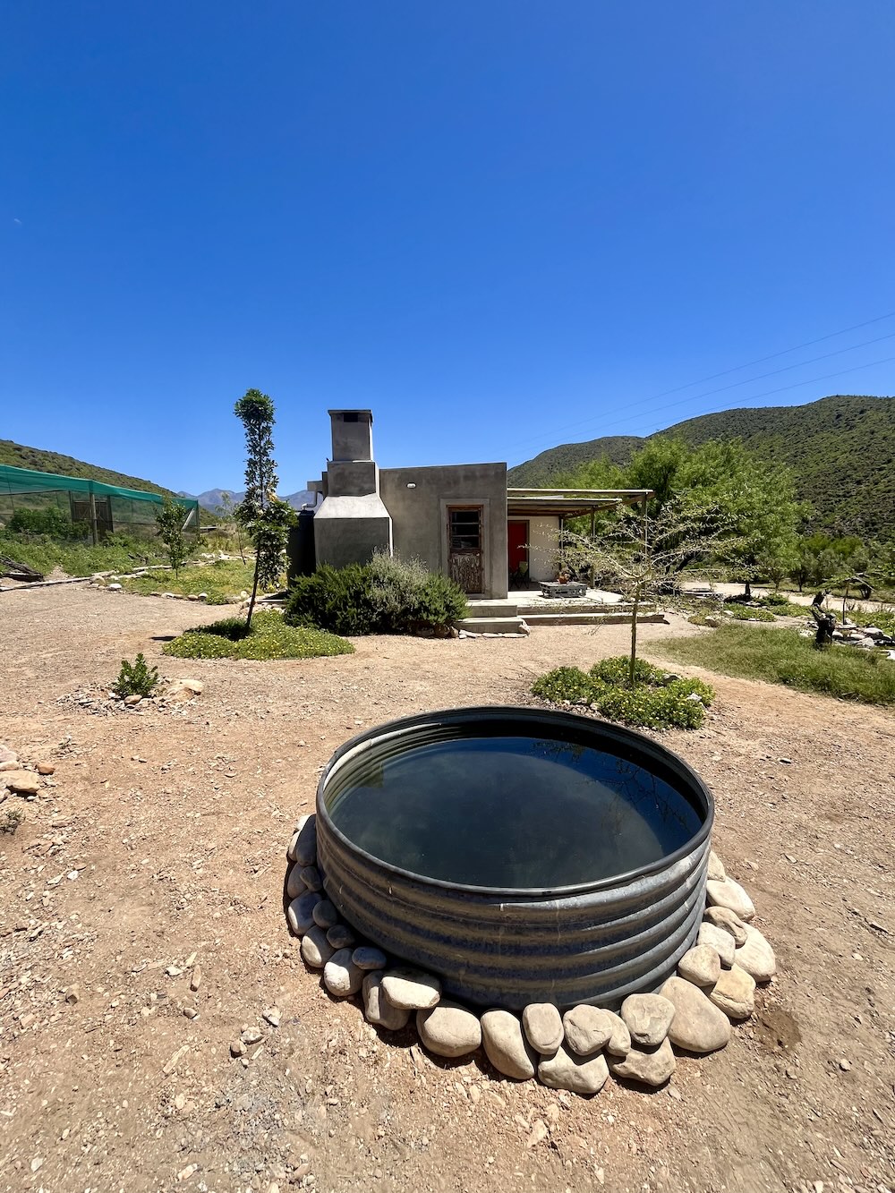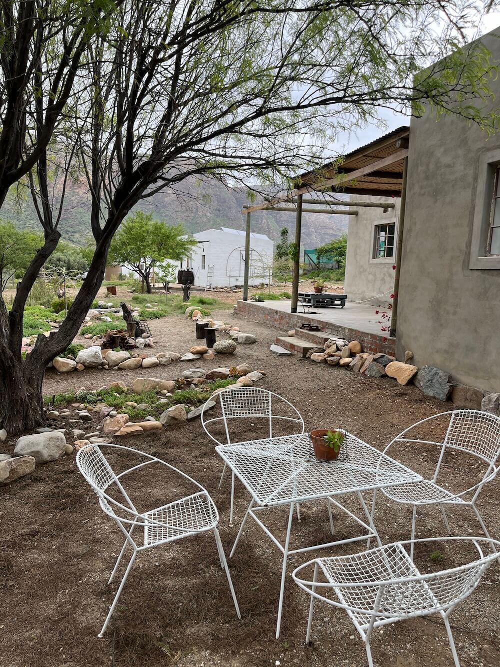 Guests should take note that water is obtained from a borehole so fresh drinking water is provided. All water is directed back into the veld. From the verandah, there are views of the olive grove, the nearby mountain range, and in the distance the R62. Safe parking and free Wi-Fi are available on the premises. Guests are also welcome to help themselves to fresh vegetables from the veggie garden during their stay.